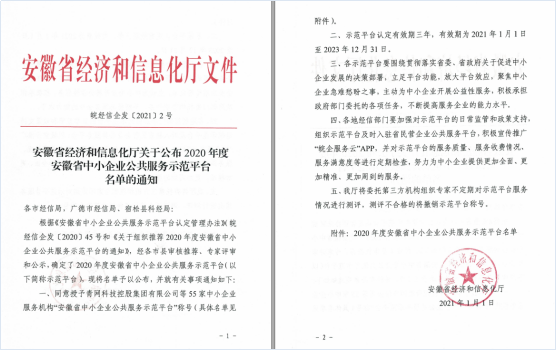 润安信科成功入选安徽省中小企业公共服务示范平台